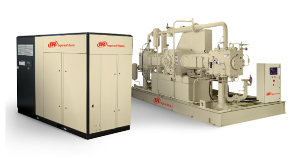 在生產(chǎn)大型瓶子時(shí)經(jīng)常要耗費(fèi)大量的高壓和低壓的壓縮空氣。對(duì)于選用組合式空氣系統(tǒng)的某些用戶(hù),英格索蘭可以提供主壓縮機(jī)配備增壓器的系統(tǒng)解決方案。這種組合的優(yōu)勢(shì)在于他允許每個(gè)流程可以獨(dú)立增加流量。主壓縮機(jī)可以選擇無(wú)油螺桿壓縮機(jī)或離心式壓縮機(jī),無(wú)需要經(jīng)常維護(hù)保養(yǎng)。堅(jiān)固的兩級(jí)無(wú)油潤(rùn)滑活塞機(jī)可以作為增壓器使用。